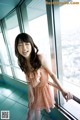 A naked asian woman sitting on a window sill.