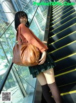A woman in a black leather jacket and stockings sitting in a car.