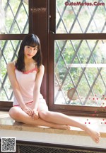 A woman in a kimono sitting on a window sill.